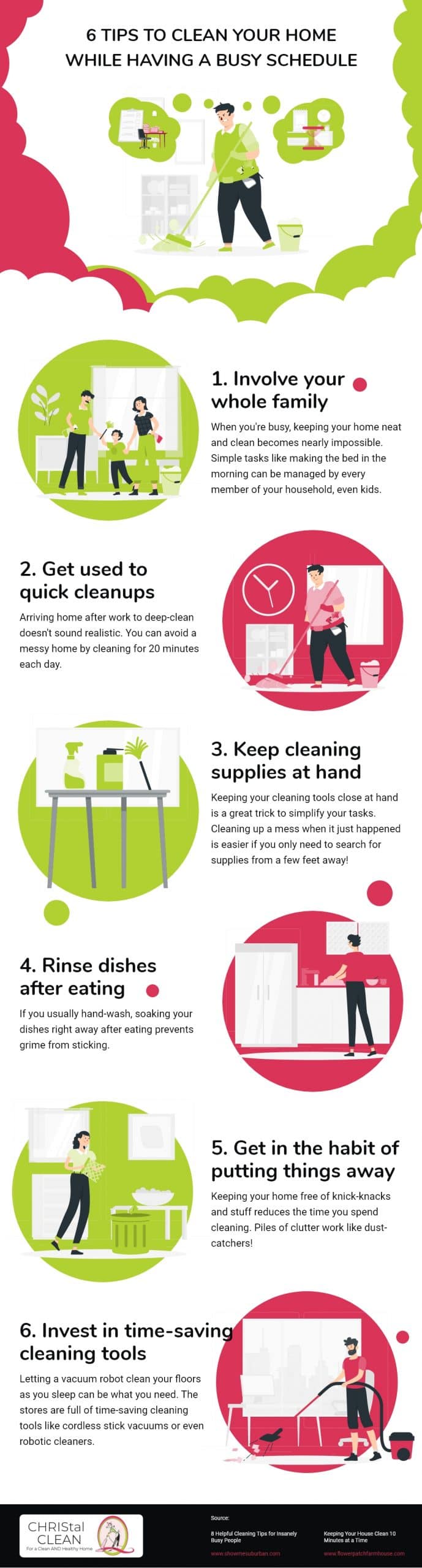 Having a busy life and being able to clean your home seems almost impossible. Try out these six cleaning tips to clean more with less time.